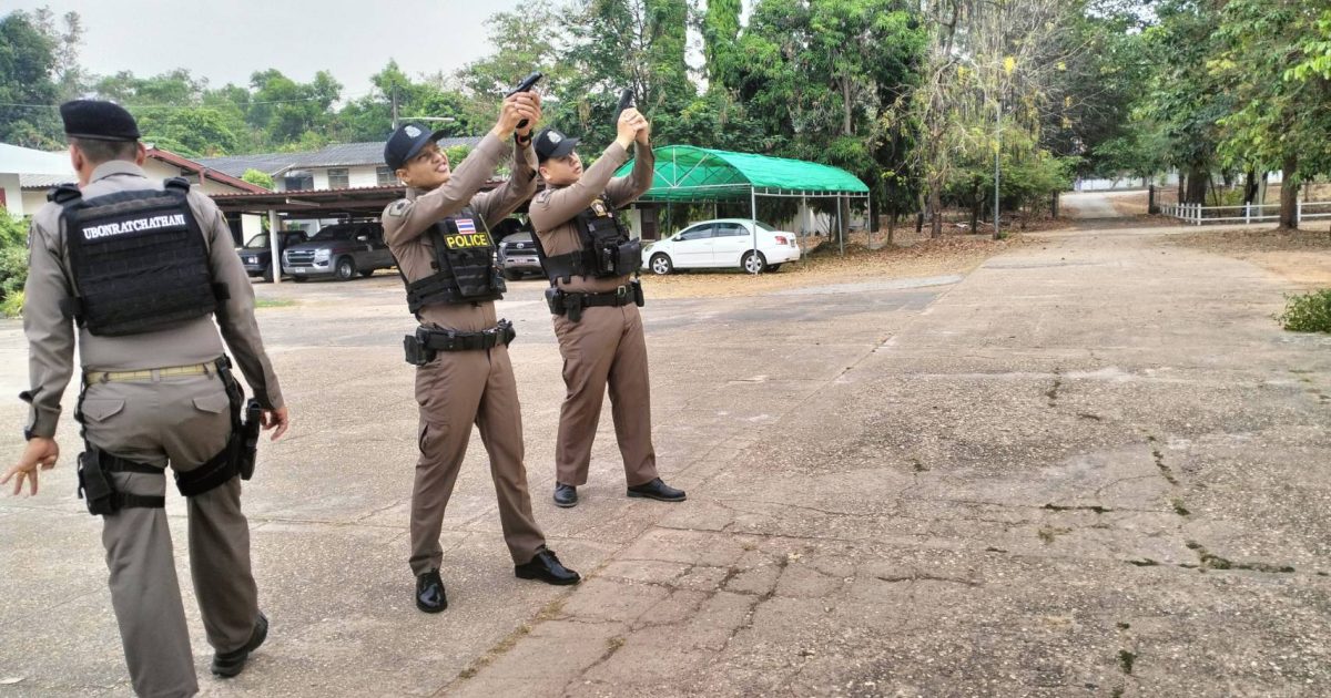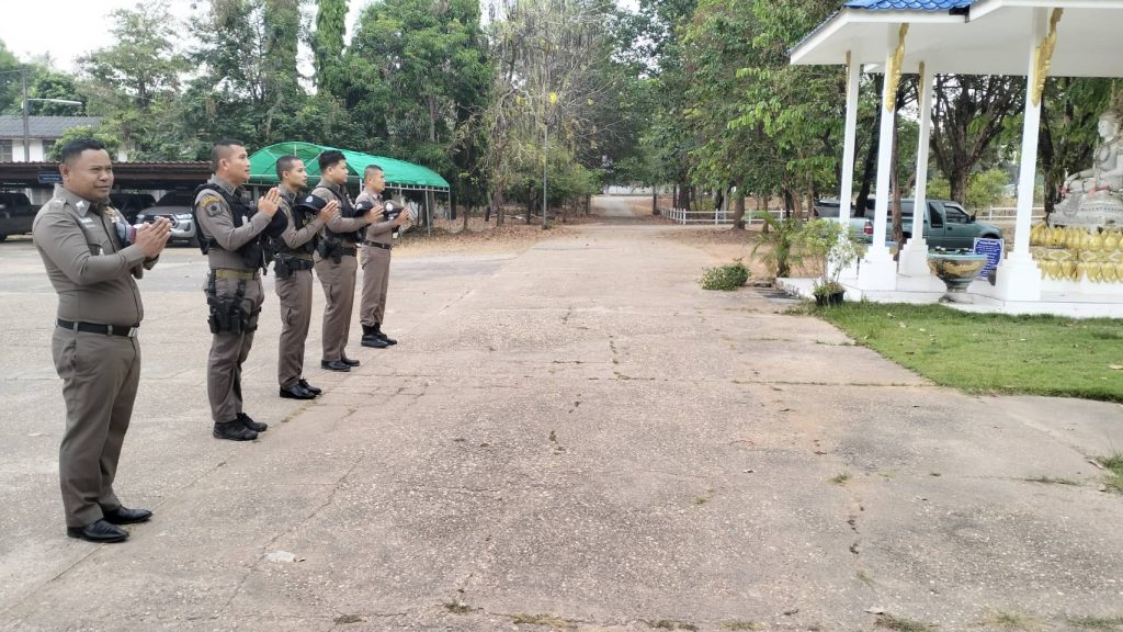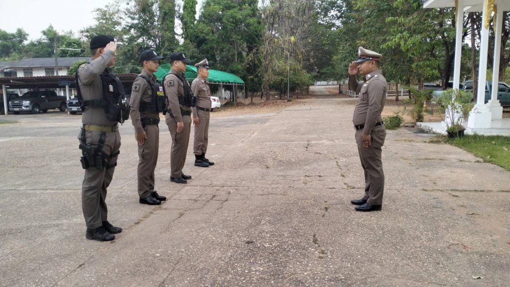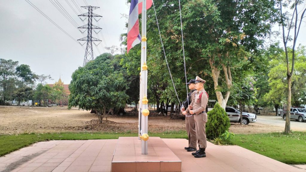 เวลา 08.00 น. พ.ต.ท.สุรชัย พันโบ สวป.สภ.สิรินธร พร้อม ร.ต.อ.เชี่ยวชาญ สายสมบัติ รอง สวป ฯ ร้อยเวร 2-0 และข้าราชการตำรวจ สภ.สิรินธร เข้าแถวเคารพธงชาติ