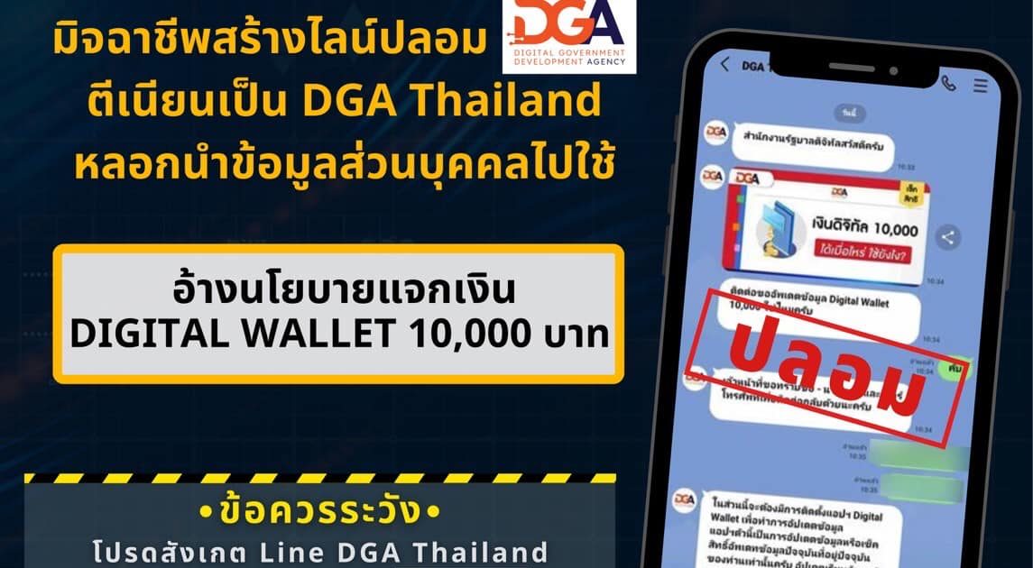 DGA ยืนยัน ไม่มีนโยบายการขอข้อมูลส่วนบุคคลจากประชาชนผ่านช่องทางออนไลน์ต่างๆหรือติดต่อทางโทรศัพท์ เพื่อขออัพเดทข้อมูลประชาชน เพื่อการรับสิทธิ์เงิน Digital Wallet 10,000 บาท หรือเพื่อดำเนินการอื่นใดที่เกี่ยวข้องกับการให้บริการประชาชน ทาง DGA จึงขอให้ประชาชนอย่าหลงเชื่อ อย่าดูแค่ชื่อสมาชิก รูปโปรไฟล์ หรือจำนวนเพื่อนและผู้ติดตามในแอปพลิเคชันไลน์ ขอให้ประชาชนโปรดสังเกตุไลน์ DGA Thailand ตัวจริงจะต้องมีสัญลักษณ์ รูปโล่สีน้ำเงินหน้าชื่อ LINE Official Account DGA Thailand เท่านั้น!