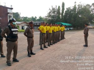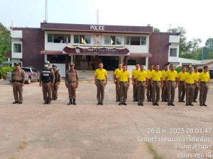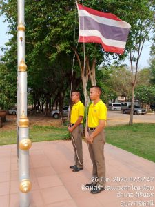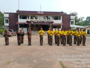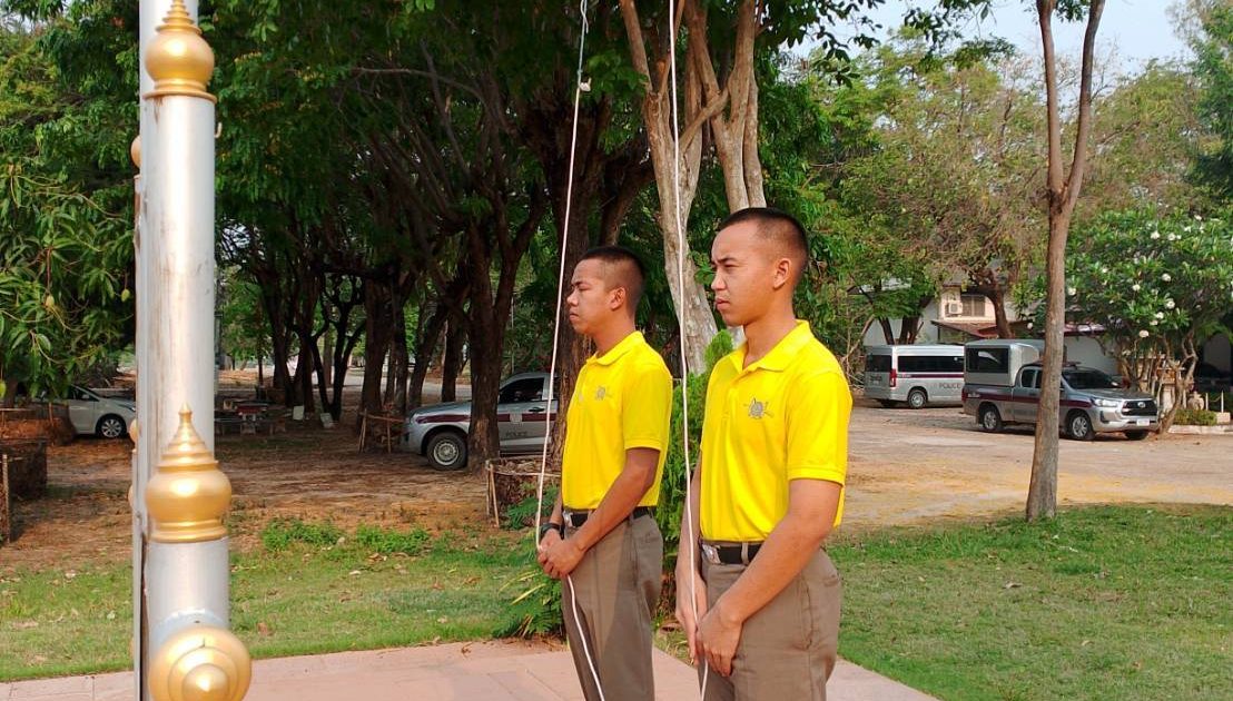 เวลา 08.00 น. ร.ต.อ.พิเศษ เผ่าภูรี รอง สวป. สภ.สิรินธร ร้อยเวร 2-0 และข้าราชการตำรวจ สภ.สิรินธร เข้าแถวเคารพธงชาติ