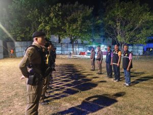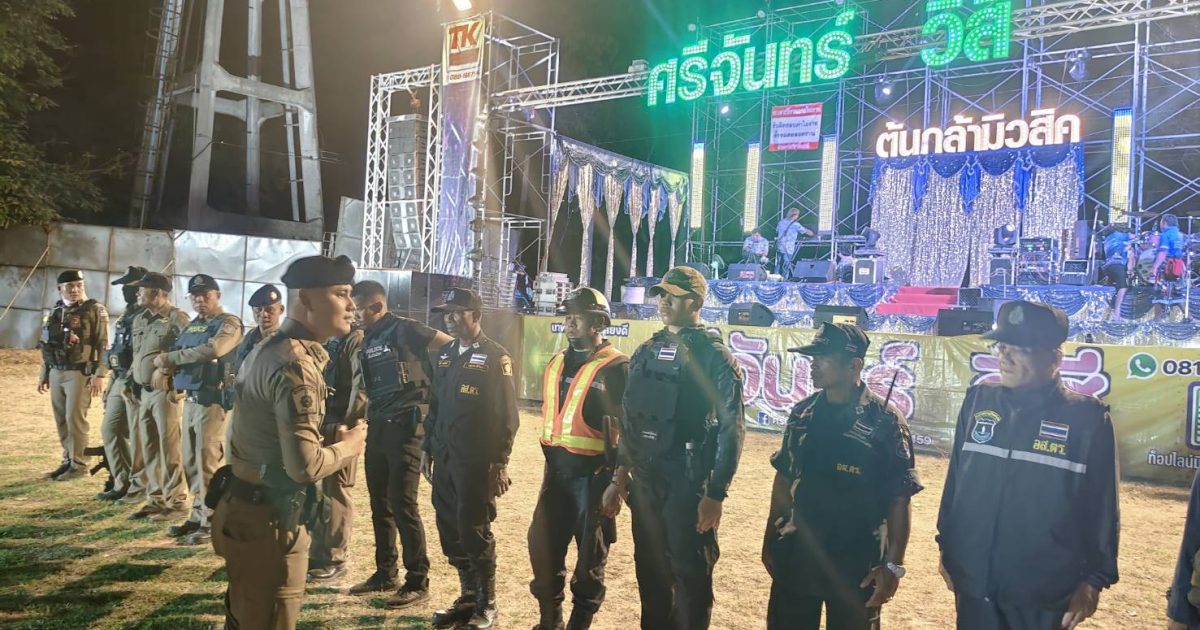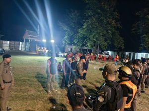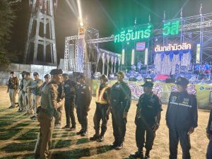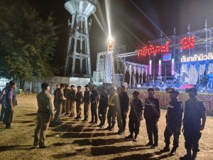 พร้อมกำลังเจ้าหน้าที่ตำรวจ งานป้องกันปราบปราม งานสืบสวน อส.ตร. กำนัน ผู้ใหญ่บ้านฯ ร่วมประชุมปล่อยแถวชุดรักษาความสงบเรียบร้อยงานมหรสพ หมอลำซิ่ง(ศรีจันทร์ วีสี) บุญประจำปีวัดเจริญทัศน์ หมู่ 1 ต.ฝางคำ อ.สิรินธร จ.อุบลราชธานี