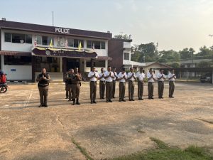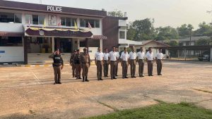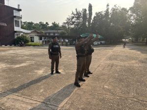 ร.ต.ต.วิรัตน์ สิทธิดา รอง สว(ป.)ฯ ร้อยเวร 2-0 พร้อมข้าราชการตำรวจ สภ.สิรินธร และ นักเรียนนายสิบตำรวจ เข้าแถวเคารพธงชาติ