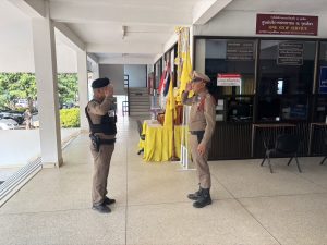 ร.ต.ต.วิรัตน์ สิทธิดา รอง สว(ป.)ฯ ร้อยเวร 2-0 ออกตรวจบนสถานีตำรวจพบ ด.ต.ธรรมวุธ สมหวัง สิบเวร อยู่ปฎิบัติหน้าที่ รายงานตัวตามแบบฝึกพระราชทาน