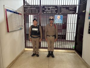 ตรวจห้องควบคุม สภาพมั่นคง แข็งแรง สะอาด แสงสว่างเพียง พบมีผู้ต้องหาในการควบคุม ชาย 3 ราย