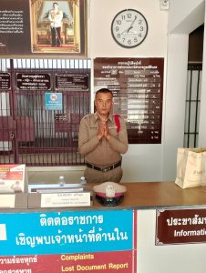 พบ ด.ต.ธรรมวุฒิ สมหวัง สิบเวร อยู่ปฏิบัติหน้าที่ รายงานตัวตามแบบฝึกพระราชทาน