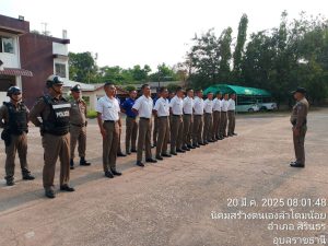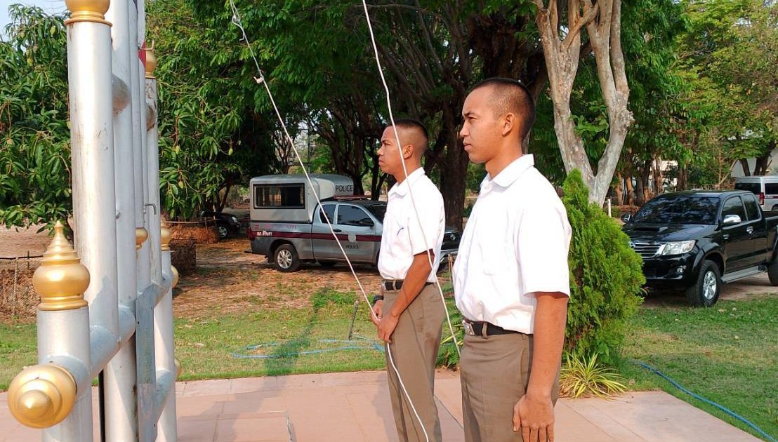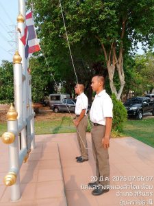 เวลา 08.00 น. ร.ต.อ.พิเศษ เผ่าภูรี รอง สวป. สภ.สิรินธร ร้อยเวร 2-0 และข้าราชการตำรวจ สภ.สิรินธร เข้าแถวเคารพธงชาติ