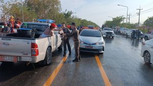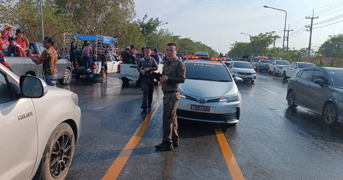 ออกตรวจพื้นที่เล่นน้ำสงกรานต์ ถนนหน้าทางเข้าพัทยาน้อย ต.คันไร่ อ.สิรินธร พบ ว.30 สภ.สิรินธร ร่วม ว.4 รักษาความปลอดภัย และอำนวยความสะดวกการจราจร นักท่องเที่ยว เหตุการณ์ปกติ