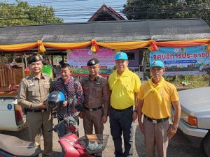 วันที่ 11 เม.ย. 2568 เวลา 09.30 น. พ.ต.อ.ศิริพงศ์ สุดา ผกก.สภ.สิรินธร พร้อม พ.ต.ท.สุริยัน คำสอน รอง ผกก.ป.ฯ, พ.ต.ท.สุรชัย พันโบ สวป.ฯ มอบหมวกนิรภัย โครงการจิตอาสาจราจรณรงค์การขับขี่ปลอดภัยสวมหมวกนิรภัยเพื่อลดอุบัติเหตุจราจรทางบกในห้วงเทศกาลปีใหม่
