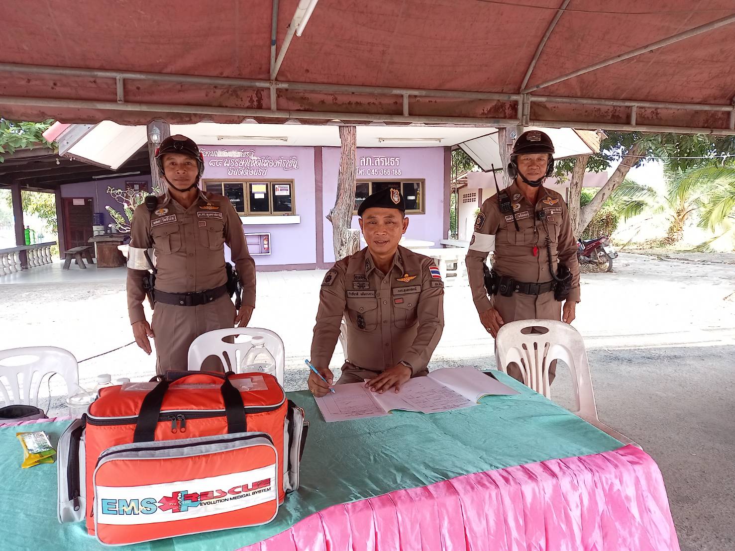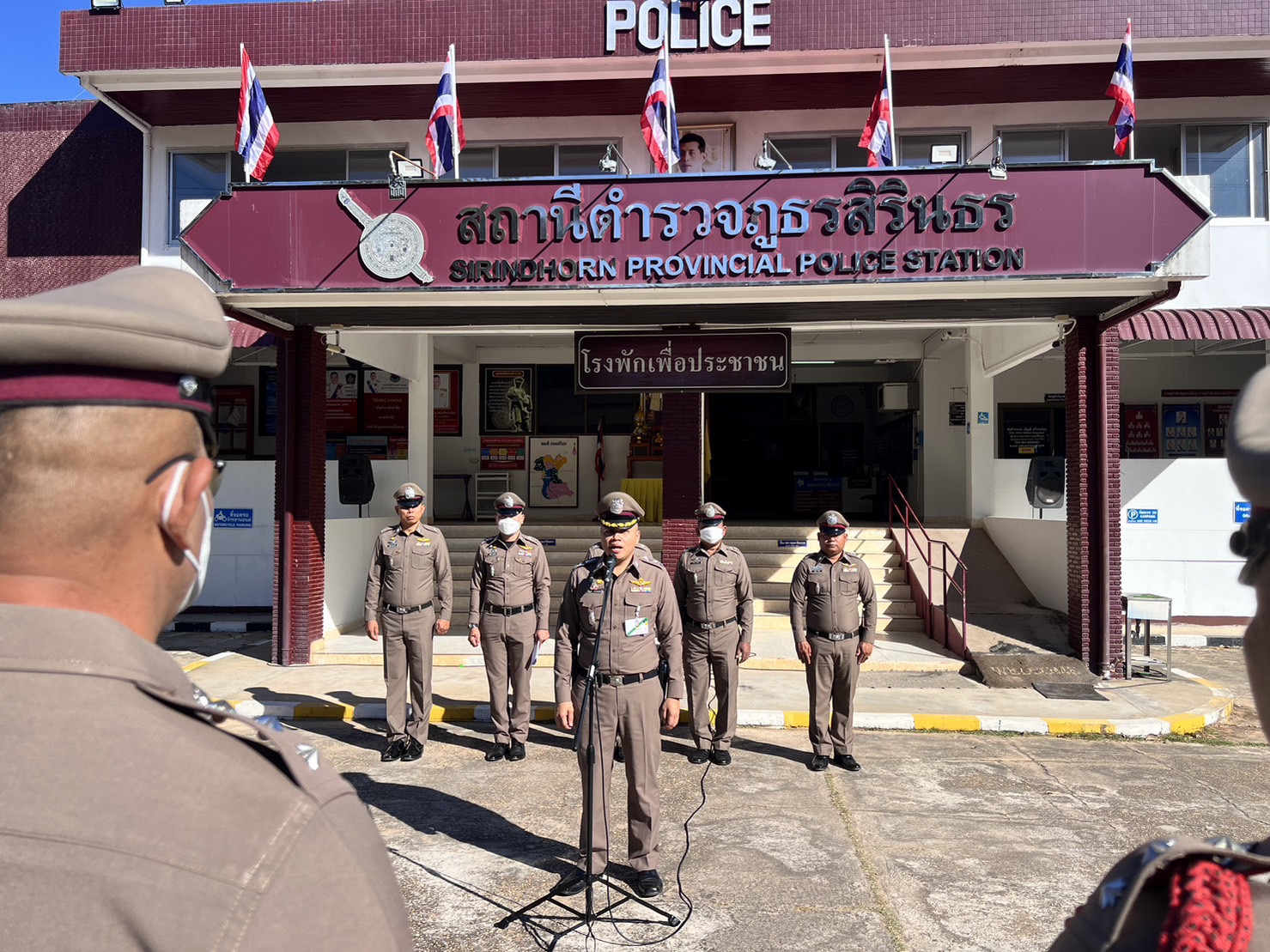 เวลา 07.30 น. พ.ต.ท.รักเกียรติ แย้มบางยาง รอง ผกก.(สอบสวน)สภ.สิรินธร พร้อมข้าราชการตำรวจในสังกัด ร่ว