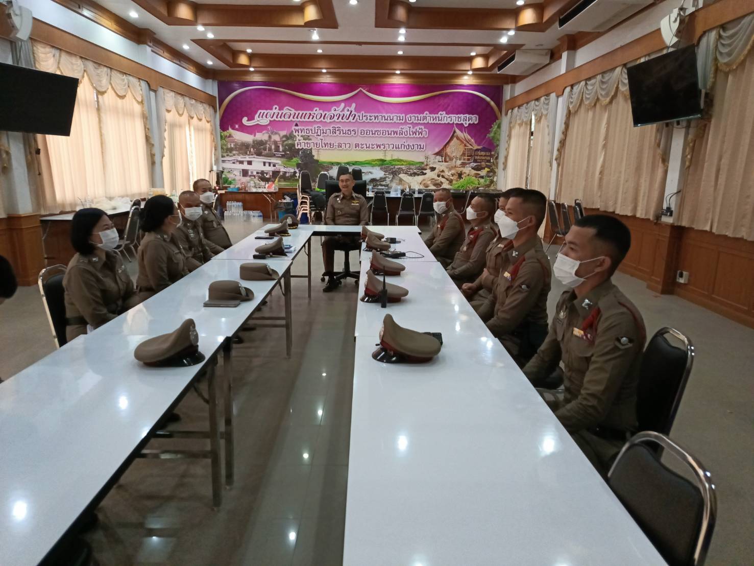 เวลา 10.00 น. พ.ต.อ.ณัฐวุฒิ หรีกประโคน ผกก.สภ.สิรินธร เรียกข้าราชการตำรวจประชุมบริหารประจำเดือน ก.พ