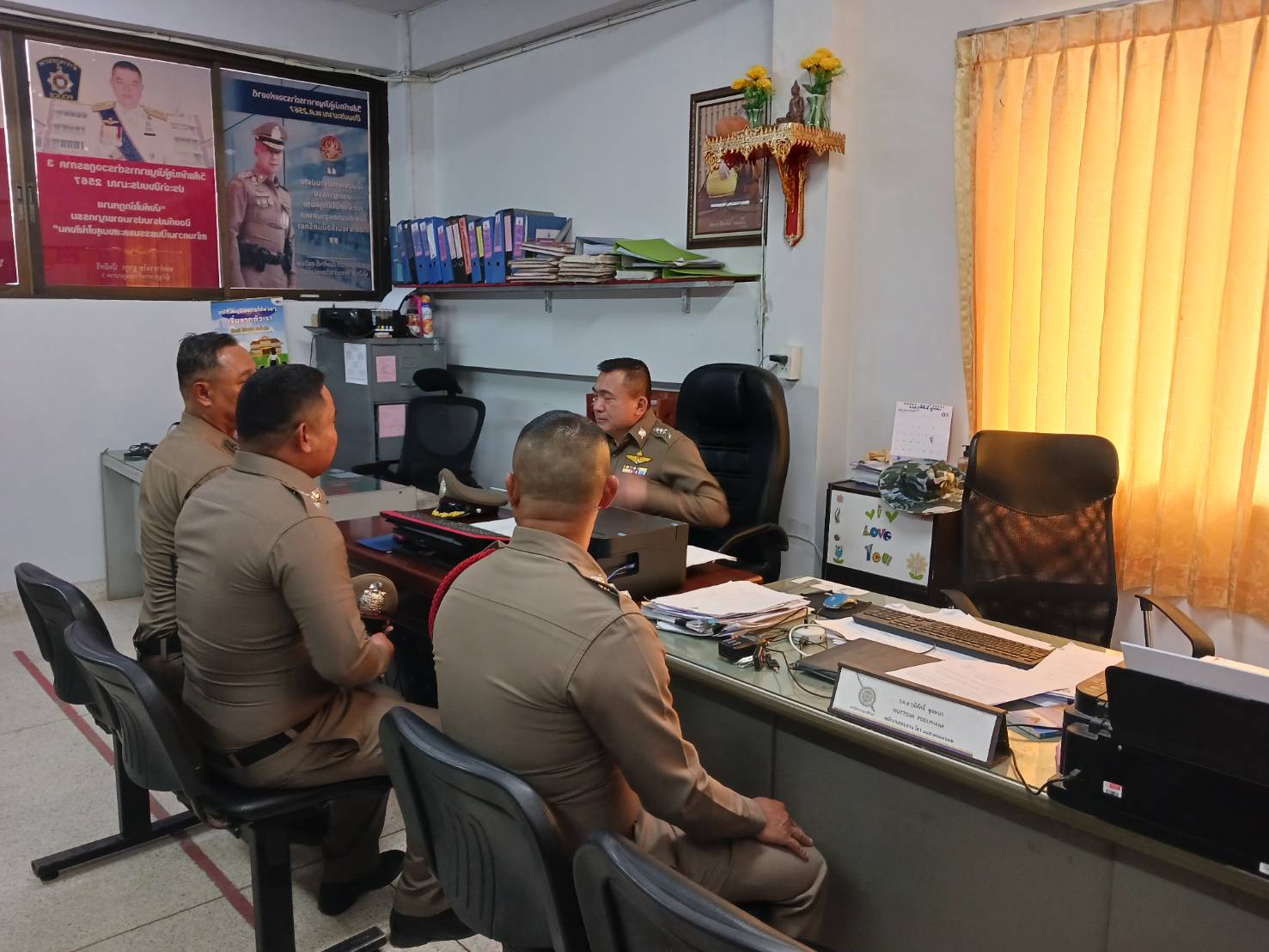 เวลา 10.00 น. พ.ต.อ.ณัฐวุฒิ หรีกประโคน ผกก.สภ.สิรินธร เรียกข้าราชการตำรวจประชุมบริหารประจำเดือน เม.