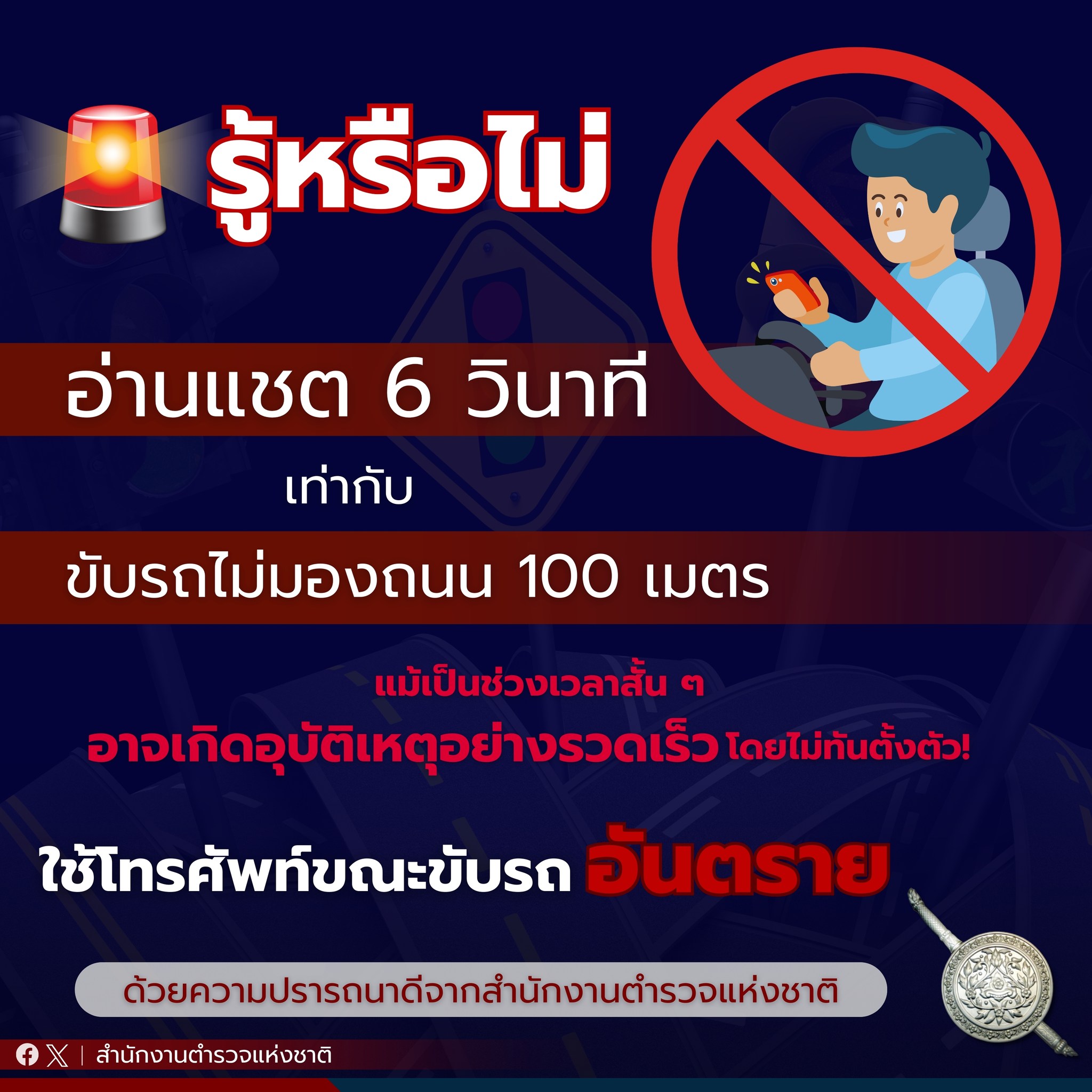 รู้หรือไม่ ทุกครั้งที่ท่านใช้โทรศัพท์มือถือระหว่างขับรถ มีความเสี่ยงเกิดอุบัติเหตุทุกครั้งที่อ่านแชต