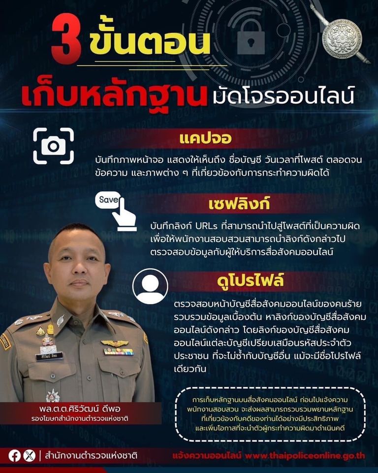 ตร. แนะ 3 ขั้นตอนง่าย ๆ ในการเก็บหลักฐานบนสื่อสังคมออนไลน์ ก่อนไปแจ้งความพนักงานสอบสวน