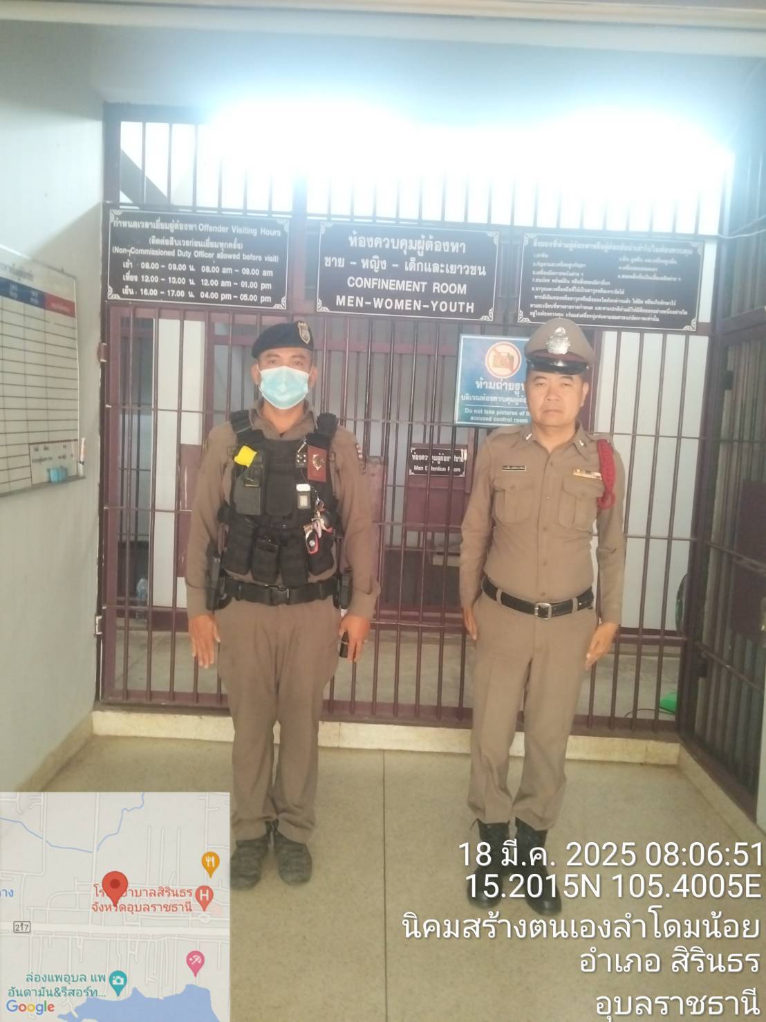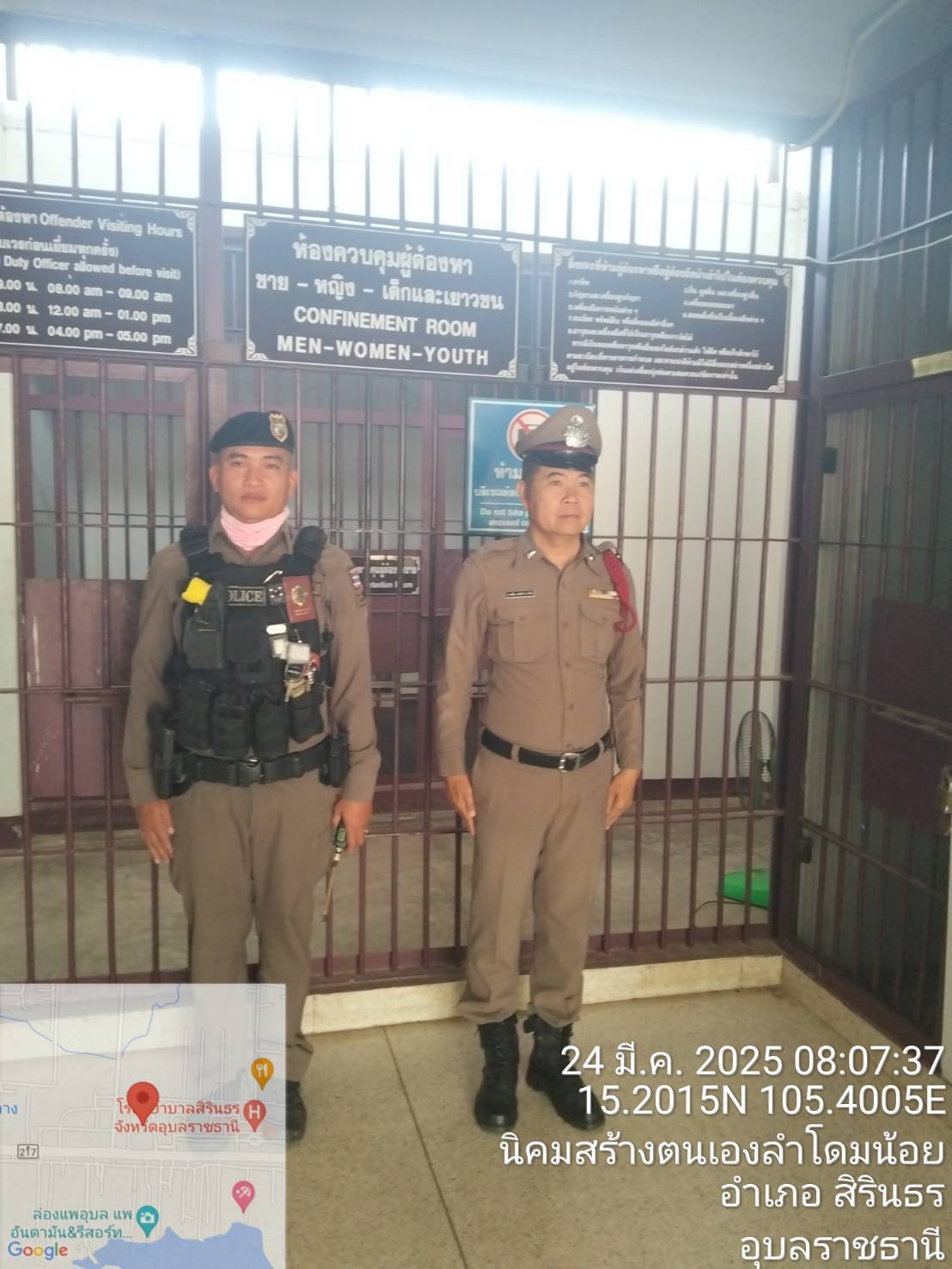 เวลา 08.00 น. ร.ต.อ.พิเศษ เผ่าภูรี รอง สวป. สภ.สิรินธร ร้อยเวร 2-0 และข้าราชการตำรวจ สภ.สิรินธร เข้า