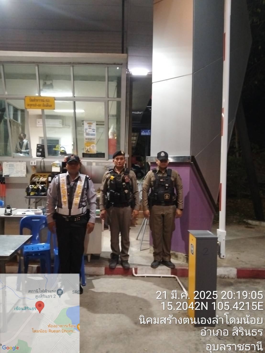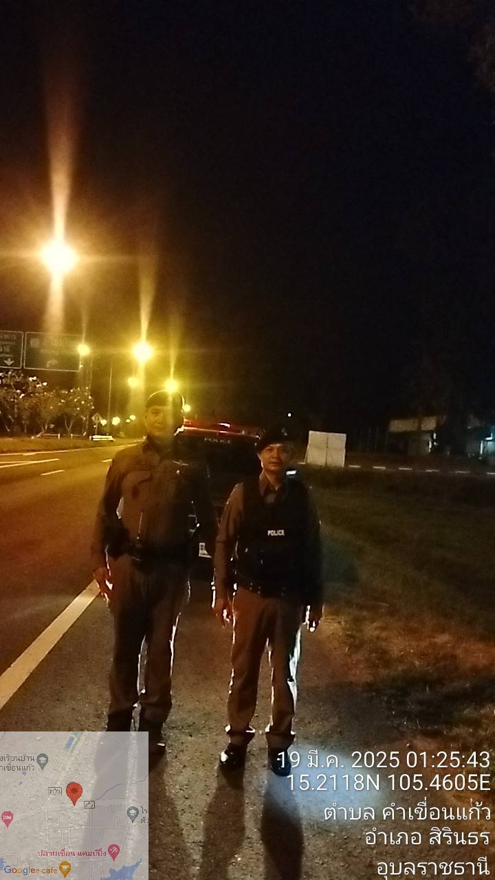 เวลา 19.00 น. พ.ต.ท.สุริยัน คำสอน รองผกก.ป.สภ.สิรินธร พ.ต.ท.สุรชัย พันโบ สวป.สภ.สิรินธร พร้อมกำลังเจ