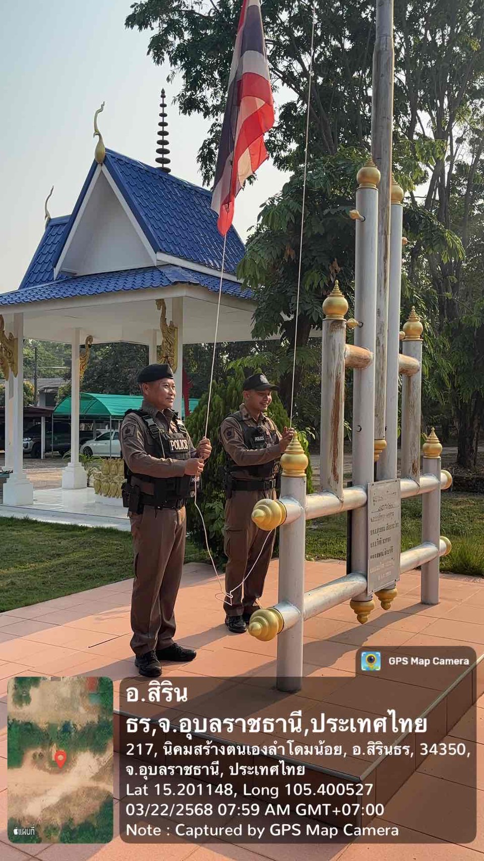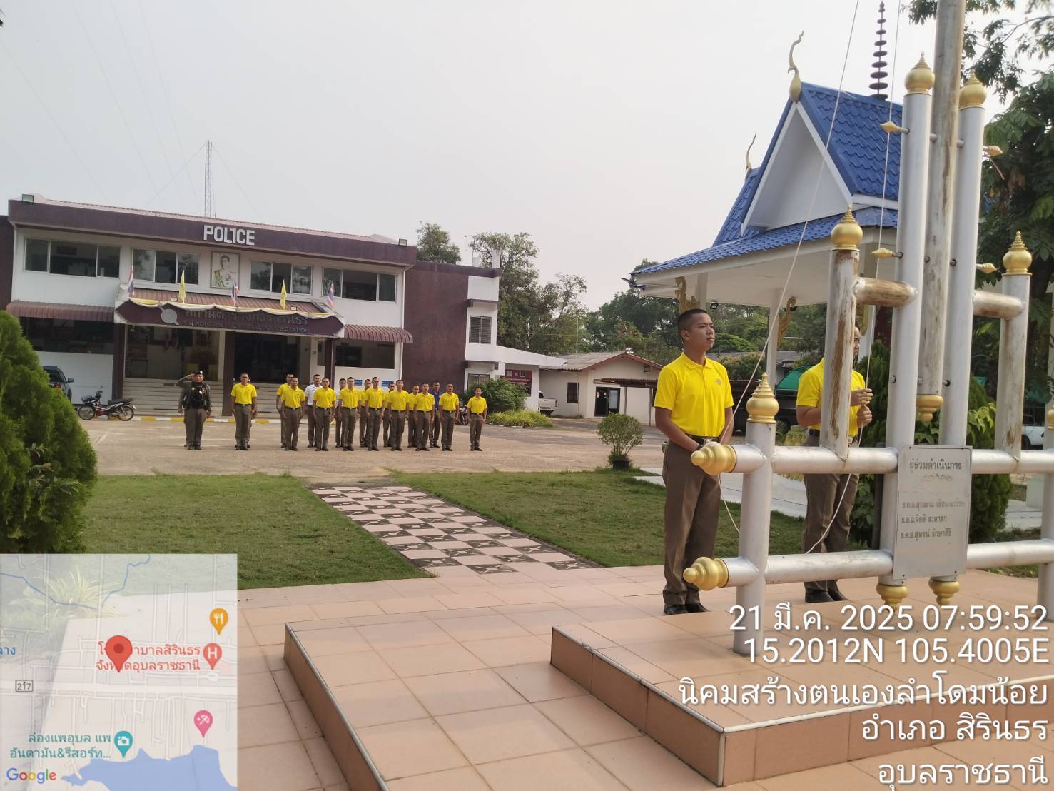 ร้อยเวร 2-0 พร้อมข้าราชการตำรวจ สภ.สิรินธร เข้าแถวเคารพธงชาติ