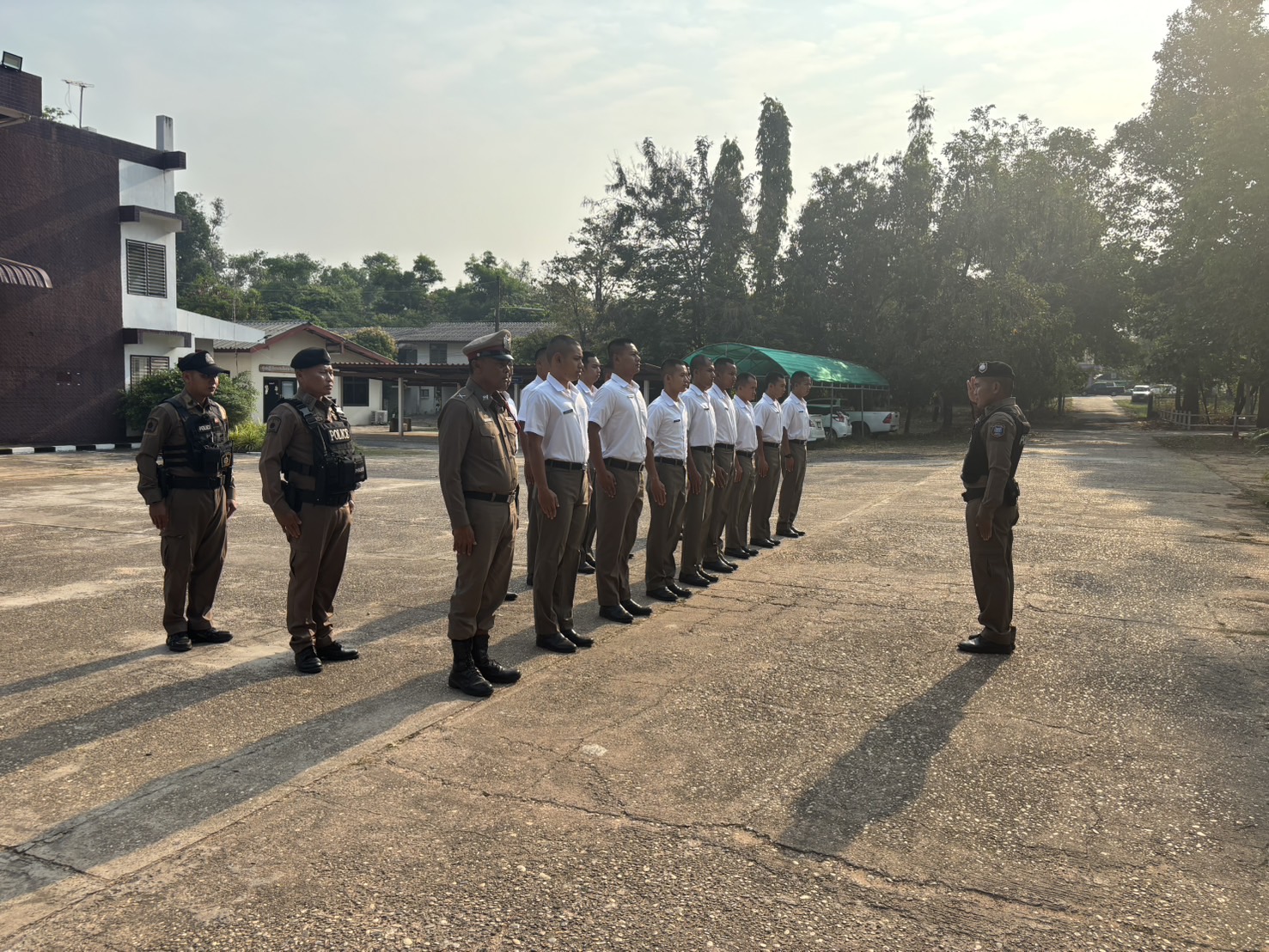 รอง สวป. สภ.สิรินธร พร้อม ร้อยเวร 20, ชุดสายตรวจ, นสต.ฝึกงาน เข้าแถวเคารพธงชาติ