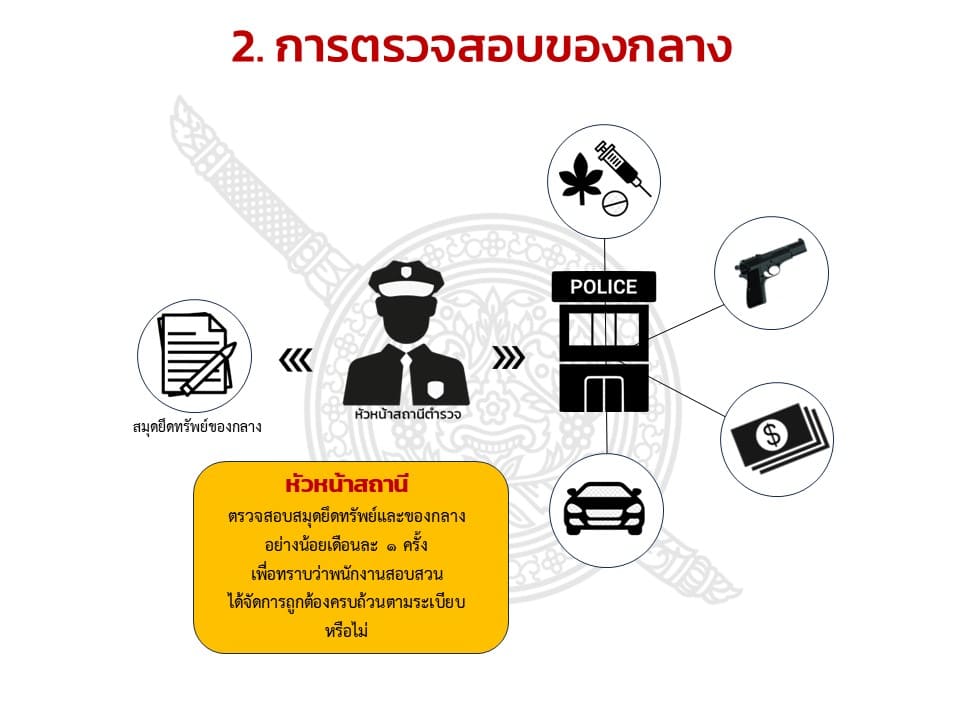 - ฝึกอบรม เสริมสร้างความรู้ ความเข้าใจ ให้เจ้าหน้าที่ตำรวจในการใช้ทรัพย์สินของทางราชการ