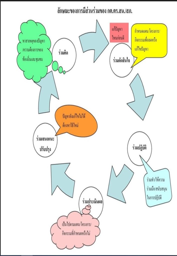 1) มีส่วนร่วมในการคิด ศึกษาและค้นคว้าหาสภาพและสาเหตุของปัญหาตลอดจนความต้องการของท้องถิ่นและชุมชน